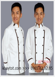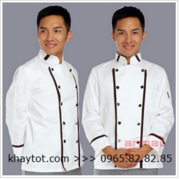 - Áo đầu bếp đông phục được sản xuất bằng chất liệu cotton, ka ki , với thiết kế đơn giản, cổ áo thiết kế cổ tàu tạo sự trẻ trung, năng động, viền áo màu nâu tạo điểm nhấn và cá tính cho bộ trang phục bếp làm tăng thêm cái vẻ đẹp thẩm mỹ.