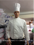 - Mẫu đồng phục bếp dành cho nam được sản xuất bằng chất liệu vải Ka ki, cotton với thiết kế đẹp, đơn giản. Kiểu dáng áo bếp dành cho nam với màu trằng làm chủ đạo, cổ áo được thiết kế theo kiểu cổ tàu tạo điểm nhấn, khuy áo được bố trí sole toạ kiểu dáng áo khoẻ khoắn cho đồng phục nam giới. Mũ bếp được may với kiểu dáng xếp ly giúp đầu bếp trở lên chuyên nghiệp hơn