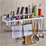 - Tính năng: Giá treo đồ nhà bếp sản xuất bằng hợp kim nhôm chắc khoẻ, màu bạc trông rất sạch sẽ, được thiết kế với kiểu dáng gọn nhẹ, đa chức năng,khiên cho gian bếp trở nên sang trọng và gọn gàng.
