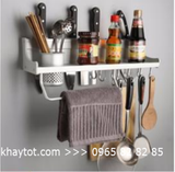 - Tính năng: Giá treo đồ nhà bếp sản xuất bằng hợp kim nhôm chắc khoẻ, màu bạc trông rất sạch sẽ, được thiết kế với kiểu dáng gọn nhẹ, đa chức năng,khiên cho gian bếp trở nên sang trọng và gọn gàng.