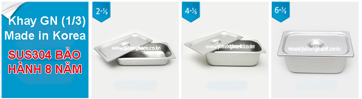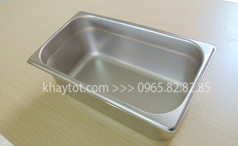 Khay GN 1-3, thiết kế theo phong cách Châu Âu, đạt chất lượng an toàn vệ sinh thực phẩm NFS của chính phủ Mỹ. Khay được sử dụng nhiều tại các quốc gia trên toàn thế giới như Châu Á, Châu Âu đặc biệt là thị trường Mỹ