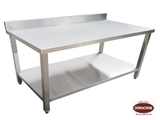 - Bàn inox 2 tầng có thành chắn thiết kế các viền mép mịn không sắc. Mặt bàn được dập nguyên tấm bằng máy thủy lực. Sản phẩm sử dụng làm bàn chia đồ, bàn đóng gói, bàn sơ chế thực phẩm.vv