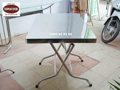 - Bàn inox có chân xếp gọn được sản xuất tại Việt Nam với chất liệu inox nhập khẩu. Bàn inox có chân gấp gọn, mặt bàn được làm bằng inox 304, chân bàn chất liệu 201 phi cứng cáp. Sản phẩm thiết kế gọn nhẹ dễ dàng vận chuyển được sử dụng làm bàn ăn cho căng tin trường học, bệnh viện, bàn ăn gia đình, khu công nghiệp v.v...