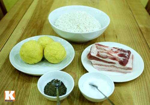 Bước 1: Đỗ xanh ngâm khoảng 2 tiếng, bỏ vỏ đãi sạch, nhặt bỏ những hại xấu bỏ đi, sau đó cho 1 ít muôi xóc, rùi cho vào nội hấp chín. Khi đỗ chín bở, dùng thìa làm cho nhuyễn sau đó rắc chút hạt tiêu và nắm thành những nắm nhỏ