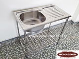 - Chậu rửa inox 1 hố, 1 bàn có chân được sản xuất bằng inox 304 và inox 201. Chậu rửa có bàn bên để đồ rất tiện dụng. Sản phẩm được sử dụng nhiều tròn gian bếp nhỏ, chung cư mini. Chậu rửa thiết kế có chân và nan thoáng dễ dàng di chuyển và tiết kiệm chi phí xây dựng.