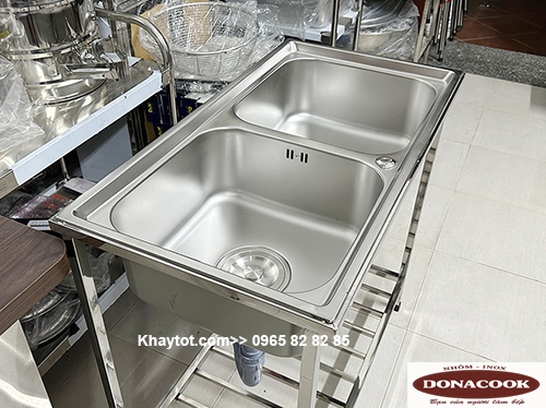 - Chậu inox 2 hố có chân thiết kế dễ dàng vận chuyển và lắp đặt tiết kiệm chi phí xây sửa. Sản phẩm dùng rứa bát, rửa tay sử dụng trong căn bếp ở chung cư mini, phòng trọ, bếp ăn gia đình v.vvv.