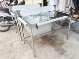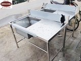 - Chậu rửa inox loại 1 hố có bàn để đồ được làm bằng chất liệu inox 201 và inox 304 tùy thuộc vào nhu cầu của khách đặt. Chậu rửa hay còn gọi bồn rửa thiết kế có bàn bên cạnh để đồ rất tiện ích. Sản phẩm được sử dụng nhiều trong các bếp ăn công nghiệp, nhà hàng, khách sạn v.v....