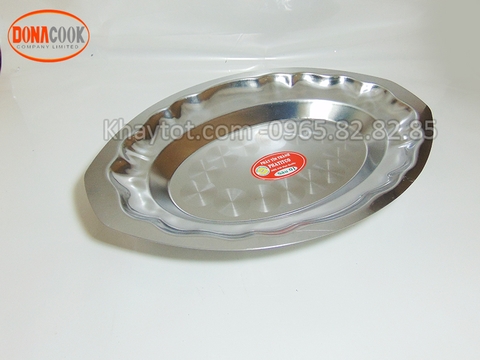Chất liệu inox an toàn vệ sinh thực phẩm. Đĩa có cthiết kê hình bầu dục phù hợp với các loại món ăn từ cá và các thực phẩm khác.