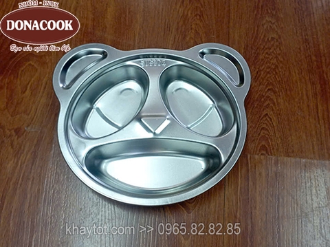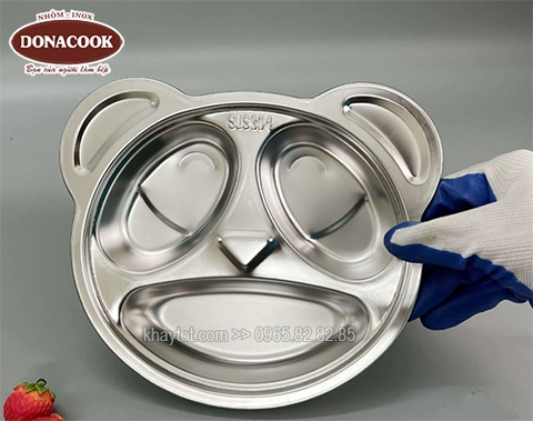 - Khay cơm inox 304 cho trẻ hình gấu, chất liệu inox 304 cao cấp