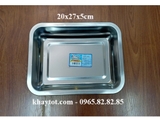 - Khay inox 20x27x5cm, chất liệu inox 201 bền đẹp, khay được gia công bo viền tỉ mỉ không sắc nhọn an toàn khi sử dụng