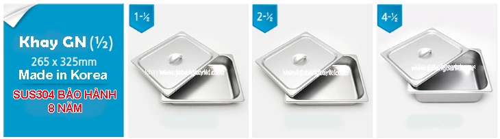 Khay GN 1-2, thiết kế theo phong cách Châu Âu, đạt chất lượng an toàn vệ sinh thực phẩm NFS của chính phủ Mỹ. Khay được sử dụng nhiều tại các quốc gia trên toàn thế giới như Châu Á, Châu Âu đặc biệt là thị trường Mỹ
