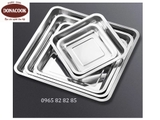 - Khay inox vuông nhiều kích thước được làm bằng chất liệu inox 201. Khay inox vuông thiết kế các viền mép bo mìn không gây cấn tay khi sử dụng. Khay vuông inox có nhiều kích thước khác nhau đó là sự lựa chon rất tinh tế cho người mua sử dụng. Khay inox dùng để đựng đồ đa năng như hoa hoả, thực phẩm v.v...