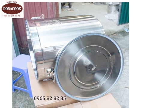 - Nồi inox 100 lít có nắp đậy , có quai cài được sản xuất bằng chất liệu inox 304 và inox 201 tuỳ thuộc vào nhu cầu khách đặt. Nồi inox hay gọi là thùng inox , xô inox dung tích 100 lít có móc khóa nắp, nắp xô có gioăng silicon chống tràn.