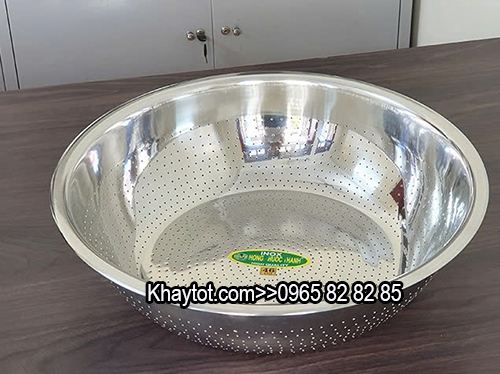 - Thiết kế với nhiều kích thước khác nhau, do thiết kế nhiều lỗ nhỏ nên ngoài việc đựng đồ rổ inox còn có chức năng vo gạo. Khi dùng rá inox đột lỗ này người sử dụng cảm thấy an toàn vì các viền mép bo mịn ko bị xước tay.
