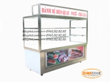 + Kệ kính 2 tầng đựng đồ, nóc ốp quảng cáo 3 mặt đèn halogen