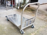 - Xe đẩy inox 1 tầng được sản xuất tại Việt Nam. Xe được làm bằng chất liệu inox 201 cao cấp. Xe đẩy inox loại 1 tầng chuyên dùng để chở hàng hóa trong nhà kho hoặc dùng chở nồi, thực phẩm trước chế biến trong nhà bếpv.v.....Bánh xe sử dụng là loại bánh xe cao su cốt thép, gồm 2 bánh xoay có khóa và 2 bánh cố định. Tổng tải trọng có thể chịu được của 4 bánh xe là 400kg.