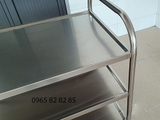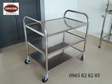 - Xe đẩy inox 3 tầng được sản xuất bằng chất liệu inox 201/ inox 304 tuỳ thuộc vào nhu cầu khách đặt. Xe đẩy inox có bánh xe dùng để đẩy thức ăn trong nhà bếp hay chở đồ dùng, thiết bị trong bệnh viện, trường học, nhà má v.v.......