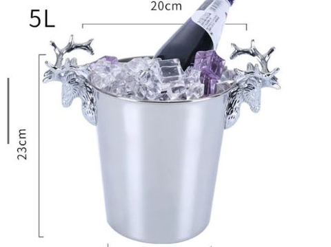 - Xô ngâm rượu vang bằng inox đầu hươu màu bạc, Xô hươu, Xô ướp lạnh rượu vàng màu bạc. Được làm bằng thép không gỉ có độ cứng lớn, khả năng chống ăn mòn tốt, không bám màu, bám mùi dễ dàng trong quá trình vệ sinh